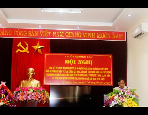 Sáng 31-10, Thị xã Mường Lay tổ chức Hội nghị tổng kết Nghị quyết số 04-NQ/TU, ngày 23/5/2016 của BCH Đảng bộ tỉnh về “tăng cường xây dựng, củng cố, kiện toàn, nâng cao chất lượng hoạt động chi bộ và phát triển đảng viên, tổ chức đảng ở cơ sở trực thuộc xã, thị trấn, cơ quan, đơn vị chưa có đảng viên, chưa có chi bộ, giai đoạn 2016-2020”. Đến dự có đồng chí Phạm Phú Duẩn, Ủy viên BTV Tỉnh ủy, Bí thư Đảng bộ thị xã; Các đồng chí ủy viên BCH Đảng bộ thị xã; Đại diện cấp ủy các chi, đảng bộ trực thuộc đảng bộ thị xã.