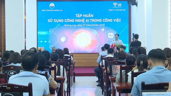 Nhằm nâng cao nhận thức và năng lực ứng dụng công nghệ mới trong thời đại chuyển đổi số, sáng ngày 27-8, UBND phường Mường Lay đã phối hợp với Công ty IGB Media tổ chức buổi tập huấn kiến thức ứng dụng công nghệ AI trong công việc cho đội ngũ cán bộ, công chức, viên chức các cơ quan, đơn vị trên địa bàn. Dự lớp tập huấn có các đồng chí trong Thường trực Đảng ủy, Thường trực HĐND, lãnh đạo UBND phường.