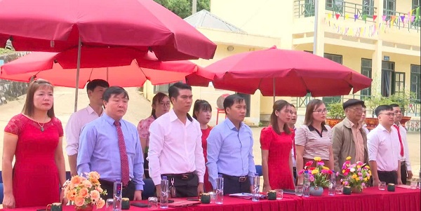 Đại biểu, cán bộ quản lý, giáo viên và học sinh Trường PTDTBT tiểu học số 2 Sá Tổng trang trọng thực hiện nghi lễ chào cờ