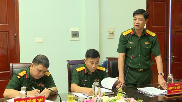 Nội dung làm việc tập trung vào việc kiểm tra như: Xây dựng hệ thống văn kiện tác chiến, kế hoạch xây dựng đơn vị vững mạnh toàn diện "Mẫu mực, tiêu biểu".Công tác tham mưu thành lập và hoạt động của Ban CHPT dân sự.Công tác tham mưu và thực hiện Luật Phòng không nhân dân. Kế hoạch, tiến trình biểu, đăng ký thống kê huấn luyện, sổ sách, giáo án;hệ thống biển bảng chính quy; lễ tiết tác phong, nơi ăn, ở, làm việc về thực hiện chế độ trong ngày, trong tuần. Hệ Thống thao trường, vật chất, trang bị, học cụ phục vụ huấn luyện.Công tác hoạt động, phối hợp của DQTV; công tác giáo dục QP &AN.Công tác sắp xếp, bổ nhiệm cán bộ Ban CHQS cấp xã; củng cố xâydựng lực lượng DQTV. Kết quả khảo sát xây dựng trụ sở Ban CHQS cấp xã; Hoạt động của chi bộ quân sự và hoạt động công tác đảng, công tác chính trị của BanCHQS xã, phường.Công tác bảo đảm Hậu cần - kỹ thuật.