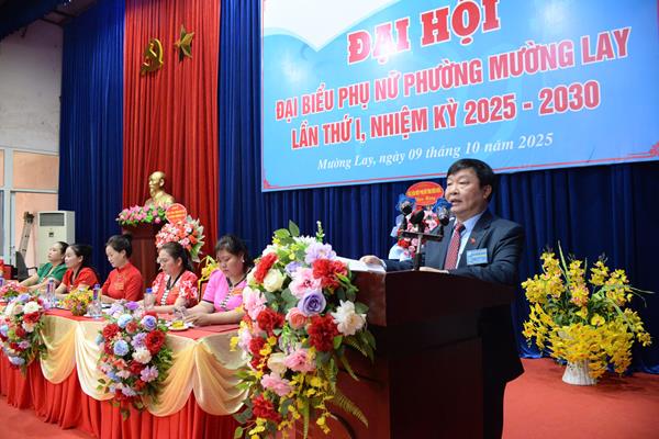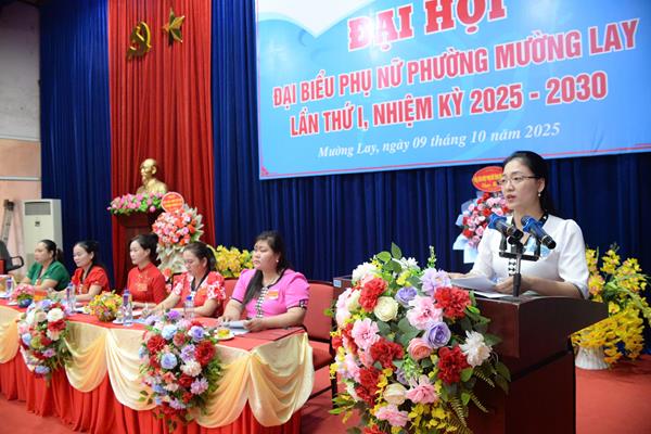 Sáng ngày 9-10, Hội Liên hiệp Phụ nữ phường Mường Lay đã tổ chức thành công Đại hội đại biểu Phụ nữ phường lần thứ I, nhiệm kỳ 2025 – 2030. Dự và chỉ đạo Đại hội có đồng chí Pờ Diệu Ninh – Phó Chủ tịch Ủy ban MTTQ Việt Nam tỉnh, Phó Chủ tịch Phụ trách Hội LHPN tỉnh; đồng chí Bùi Hải Bình – Bí thư Đảng ủy, Chủ tịch HĐND phường, cùng đại diện lãnh đạo các ban, ngành, đoàn thể, đơn vị trên địa bàn.