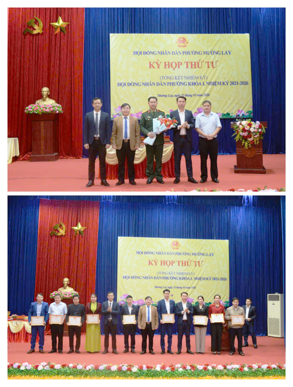 Tại kỳ họp này, HĐND phường đã tặng giấy khen cho 10 tập thể và 15 cá nhân có thành tích xuất sắc trong công tác hoạt động của HĐND phường Mường Lay, nhiệm kỳ 2021 – 2026.