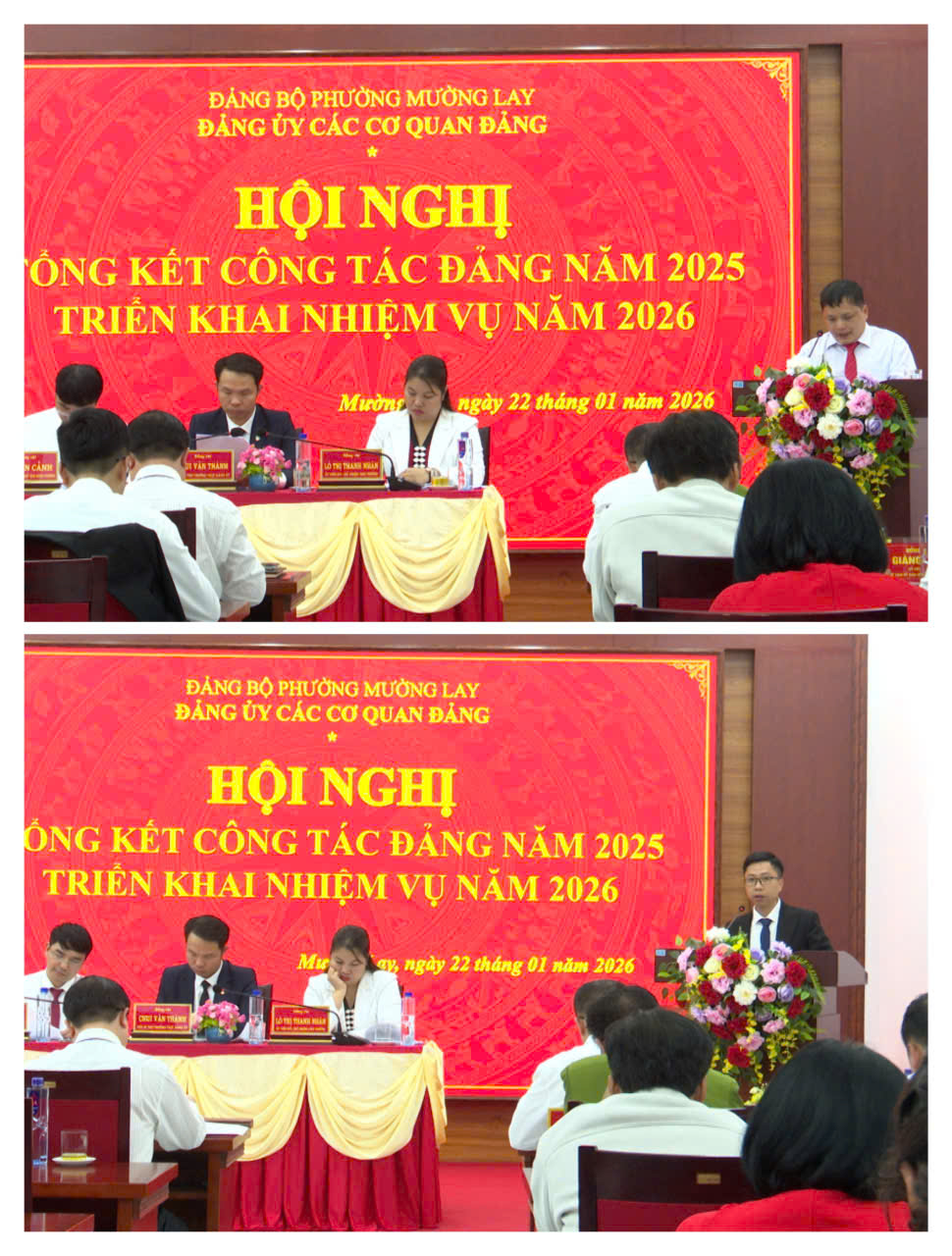 Chiều ngày 22-01, Đảng ủy các cơ quan Đảng phường Mường Lay đã tổ chức Hội nghị tổng kết công tác Đảng năm 2025, triển khai nhiệm vụ năm 2026. Dự hội nghị có Đồng chí Bùi Hải Bình – Bí thư Đảng ủy, Chủ tịch HĐND phường cùng các đồng chí trong Ban Thường vụ, Ban Chấp hành Đảng ủy các cơ quan Đảng; đại diện cấp ủy các chi bộ trực thuộc.