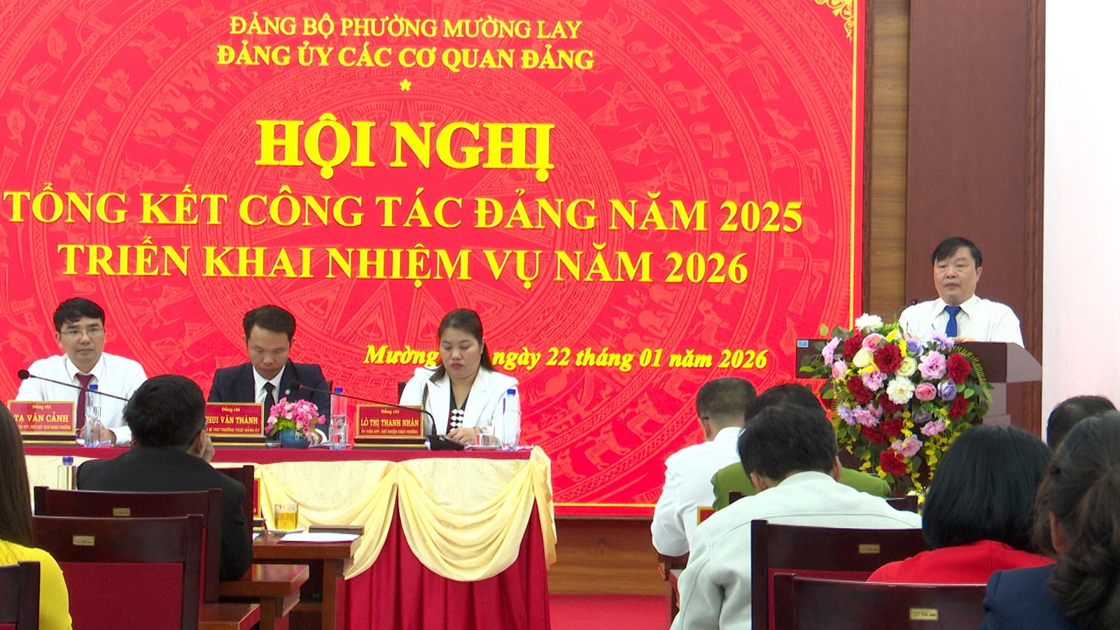 Năm 2026 Đảng ủy các cơ quan Đảng phường Mường Lay đề ra 06 nhiệm vụ trọng tâm, quyết tâm thực hiện hoàn thành thắng lợi các chỉ tiêu đã đề ra, xác định tiếp tục đổi mới phương thức lãnh đạo, nâng cao chất lượng sinh hoạt chi bộ; tăng cường công tác kiểm tra, giám sát; xây dựng đội ngũ cán bộ, đảng viên có bản lĩnh chính trị vững vàng, phẩm chất đạo đức tốt, đáp ứng yêu cầu nhiệm vụ trong tình hình mới.