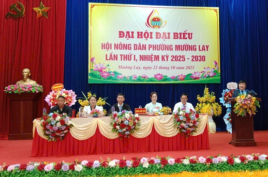 Sáng ngày 22-10, Hội Nông dân phường Mường Lay tổ chức Đại hội đại biểu lần thứ nhất, nhiệm kỳ 2025–2030. Dự Đại hội có đồng chí Bùi Hải Bình – Bí thư Đảng ủy, Chủ tịch HĐND phường, các đồng chí trong Ban Thường vụ Đảng ủy, lãnh đạo các cơ quan, đơn vị cùng 99 đại biểu chính thức, đại diện cho gần 3.000 hội viên nông dân trên địa bàn phường.