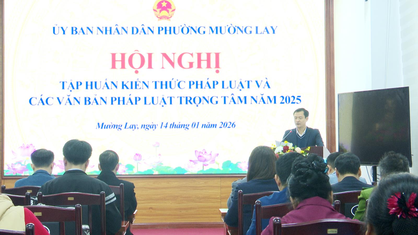 Sáng 14-01-2026, UBND phường Mường Lay tổ chức tập huấn kiến thức pháp luật và phổ biến các văn bản pháp luật mới năm 2025 cho 182 học viên.