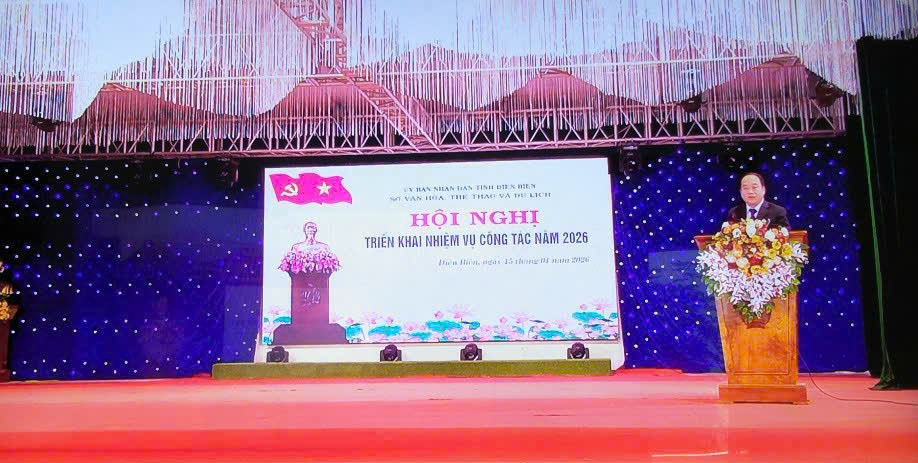 Sáng ngày 15-01, Sở Văn hóa, Thể thao và Du lịch tỉnh Điện Biên tổ chức Hội nghị trực tiếp kết hợp trực tuyến tổng kết công tác ngành Văn hóa, Thể thao và Du lịch năm 2025, triển khai nhiệm vụ công tác năm 2026 với sự tham gia của 45 điểm cầu các xã, phường trên địa bàn tỉnh.