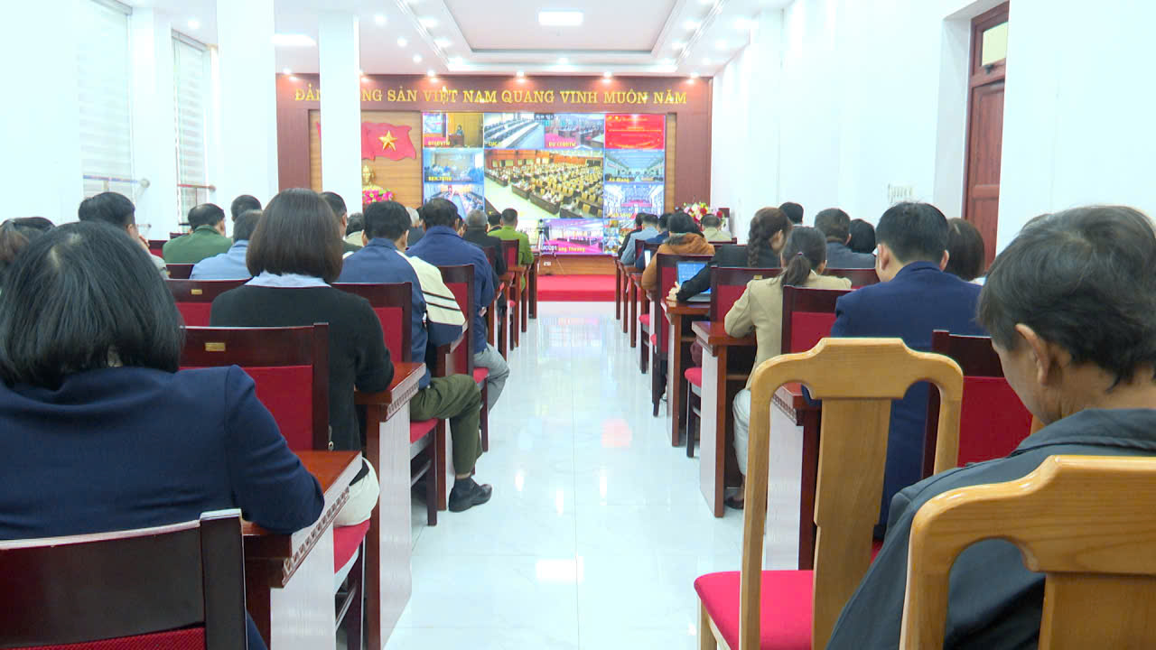 Toàn cảnh hội nghị nghe trực tuyến, điểm cầu Mường Lay